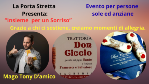 Sostieni la nostra associazione a crescere e partecipa come donatore all’evento  per persone sole ed anziane: